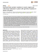 Low-level brain somatic mutations in exonic regions are collectively implicated in autism with germline mutations in autism risk genes.